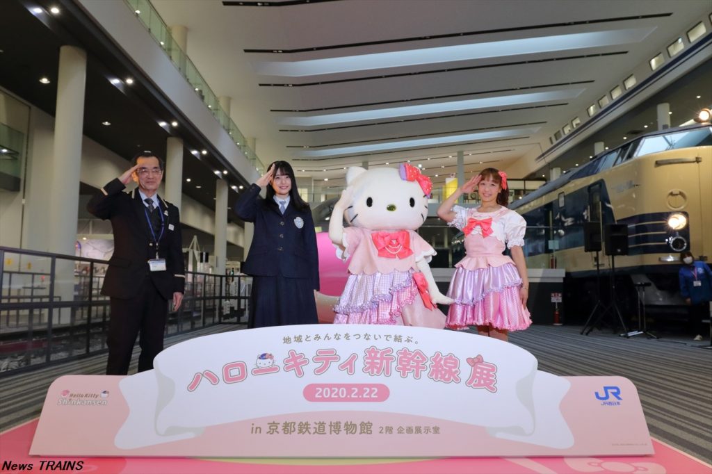 京都鉄道博物館において2月22日から企画展「ハローキティ新幹線 展」を開催、初日に本館1階500系新幹線前においてオープニングセレモニーを開催した。