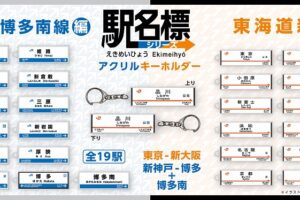 R東海リテイリング・プラスは、公式オンラインショップにおいて、新商品『駅名標アクリルキーホルダー』(東海道新幹線編・山陽新幹線・博多南編)と新幹線モチーフの『チェンジングトレインステッカー』の販売を開始した。 東海道新幹…