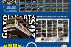 JR東日本クロスステーションは、「愛しの武蔵野線」第3弾グッズと「ジャカルタ方向幕 アクリルキーホルダー」を12月13日より販売する。 「愛しの武蔵野線」第3弾グッズは、「武蔵野線205系ジャカルタのカルタ」、「武蔵野線…