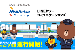 西日本鉄道とLINE ヤフーコミュニケーションズは、LINE FRIENDS の完全描き下ろしラッピング電⾞を3月16日より運行を開始する。 企画は、両社が 2021年に締結した「LINEを活⽤した⻄鉄グループの DX推…