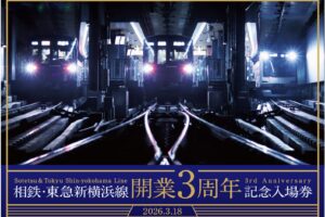 相鉄グループの相模鉄道と東急電鉄は、2023年3月18日開業した相鉄・東急新横浜線開業が3周年を迎えることを記念し「記念入場券」を販売する。 「記念入場券」は、特製の専用台紙とD型硬券入場券をセットにして数量限定で販売、…