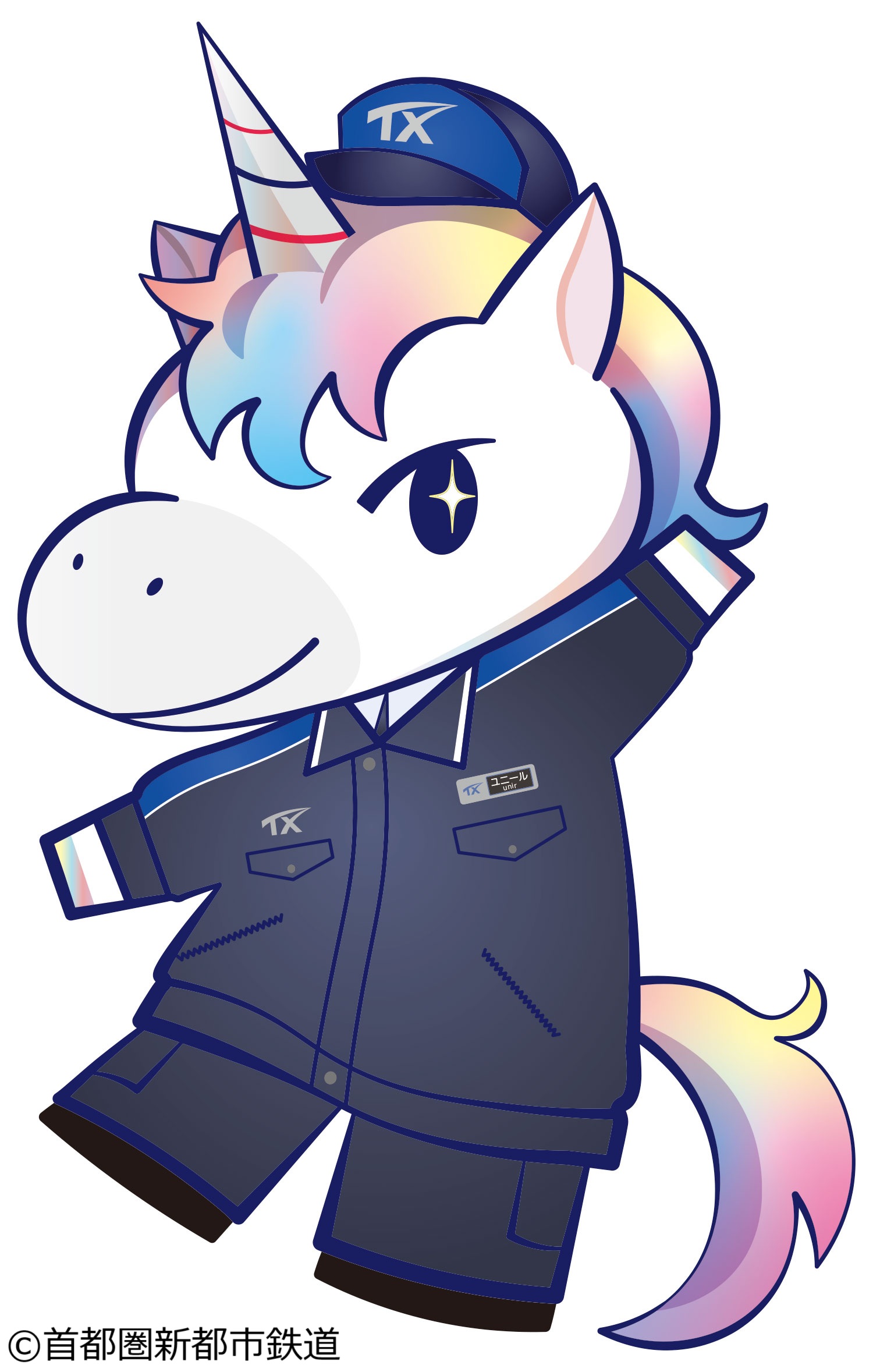 ・力強く純粋で幸運を呼ぶと言われているユニコーンがモチーフ。鉄道の明日の夢を追い、未来につながる鉄道であるTXを体現し、共に駆けていく。