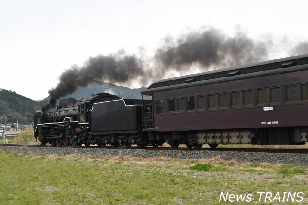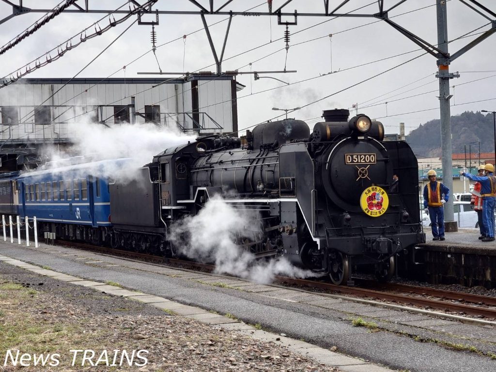 「SLやまぐち号」を牽引するD51200号機が山口線に戻ってきた。