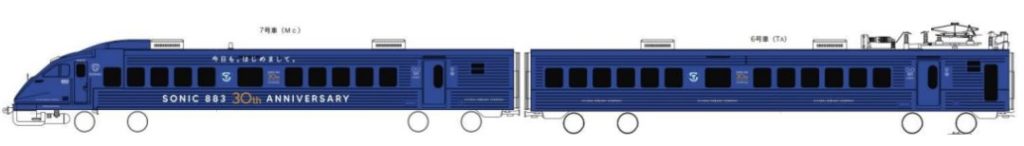2025.04.19 車両 News TRAINS編集部 【九州旅客鉄道】特急「ソニック」が運行開始から30周年 30周年を記念しラッピングトレインが4月20日より運行へ 新グッズの発売も 九州旅客鉄道(JR九州)は、博多駅~大分駅間で主に運行する特急「ソニック」が2025年4月20日に運行を開始して30周年の節目を迎えることを記念し、30周年企画を実施する。 30周年を記念した記念ロゴを作成。ロゴは、『ソニックの青と別府湾の青をイメージ』。特急「ソニック」1編成に記念ロゴのラッピングを掲出する。 また、特急「ソニック」に使用されている883系電車に『日々お客さまに変わりゆく景色を提供する思いを込めて「今日も、はじめまして。」のキャッチフレーズにしました。 』にしたという運行開始30周年ラッピングを施し、4月20日~2025年12月末頃まで運行する。 また、JR九州リテールは、ソニックをパッケージに模したロングバームクーヘンをはじめ歴代ソニックが勢ぞろいしたクリアファイルやリングノートなどの商品をラインナップしたオリジナルグッズを発売する。博多駅や小倉駅、大分駅、別府駅の「銘品蔵」限定での発売となる。