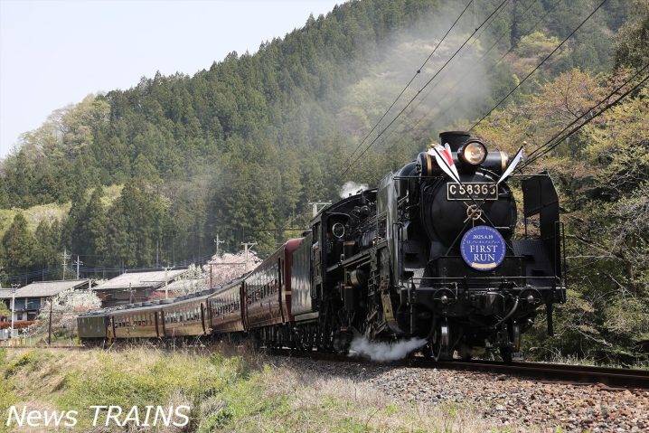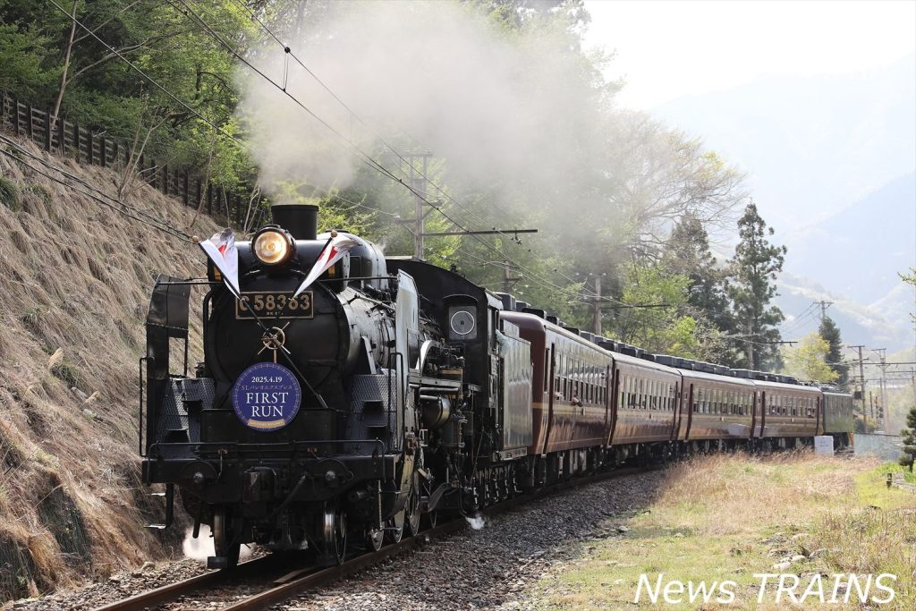 2025.04.19 Photo report News TRAINS編集部 【秩父鉄道】「SLパレオエクスプレス」が2025年の運行を開始 「SLファーストラン号」は特別ヘッドマークを掲出、日章旗を掲揚し運転<report> 秩父鉄道は、「SLパレオエクスプレス」の運行を2025年4月19日から開始した。 4月19日のファーストランでは、熊谷・ふかや花園・寄居・長瀞・秩父の各駅で沿線のキャラクターが登場したほか、「SLパレオエクスプレス」を牽引する蒸気機関車C58363号機に特別ヘッドマークを掲出、日章旗掲揚の「SLファーストラン号」として運転した。 2025年の「SLパレオエクスプレス」は12月7日までの土日祝日を中心に89日間を運転する。