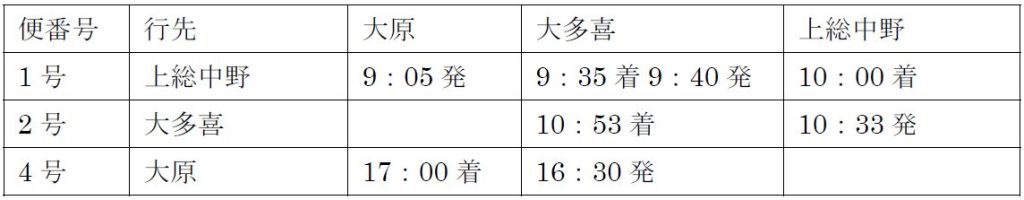 《アクセス》イベント開催当日はJR大原駅着8時55分下り新宿わかしお号、小湊鐵道上総中野駅着下り10時22分着列車に接続、帰路にも臨時急行代行バス「ありがとうキハ52 125号」大多喜駅直行便を運行