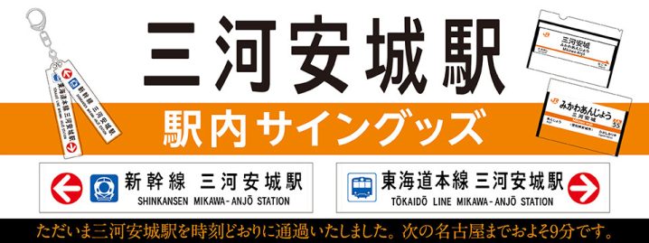 JR東海リテイリング・プラスは、東海道新幹線のぞみ号車内の「定時通過放送」でおなじみの三河安城駅のオリジナルグッズを4月28日より発売する。