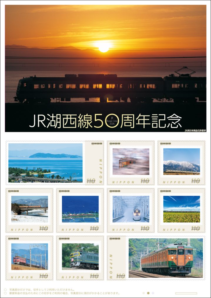 日本郵便近畿支社は、オリジナルフレーム切手「JR湖西線50周年記念」を5月19日より販売する。