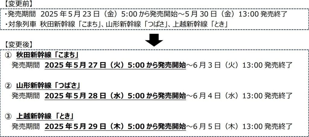 東日本旅客鉄道(JR東日本)は、新幹線e チケット(トクだ値タイムセール60%割引)について発売開始日を変更することを発表した。