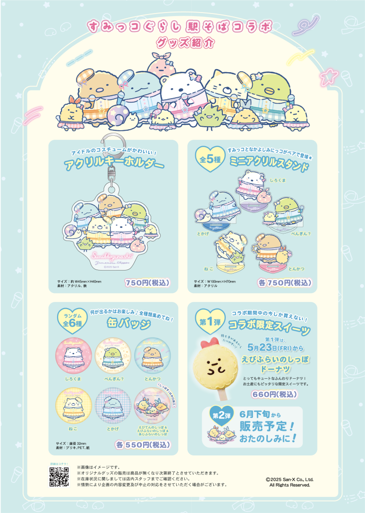 なお、「すみっコぐらし 駅そばコラボ」は、ミニタオルの入荷が物流の影響で遅れていることから、フードメニューは準備が整い次第提供の開始となる。ドリンクメニュー・オリジナルグッズ・ドーナツは予定通り5/23から提供中。