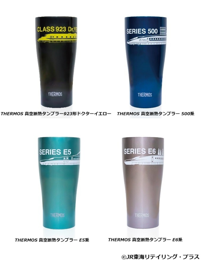 「THERMOS(サーモス) 真空断熱タンブラー」は、ステンレス製魔法びん構造の高い保温・保冷力でおいしい温度をキープすることができ、様々なシーンで快適に使えることで人気の商品だ。そんな、真空断熱タンブラーに人気の新幹線車両のデザインが登場する。タンブラー本体のデザインに、「923形ドクターイエロー」「500系」「E5系」「E6系」の4種類の新幹線車両をデザイン。公式オンラインショップなどで販売する。