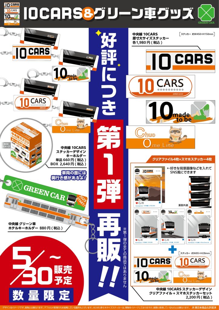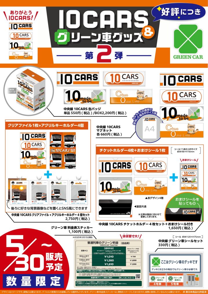 JR東日本クロスステーションは、JR中央線快速沿線のNewDays店舗において「中央線快速 10CARS&グリーン車グッズ第2弾」を5月30日から発売する。