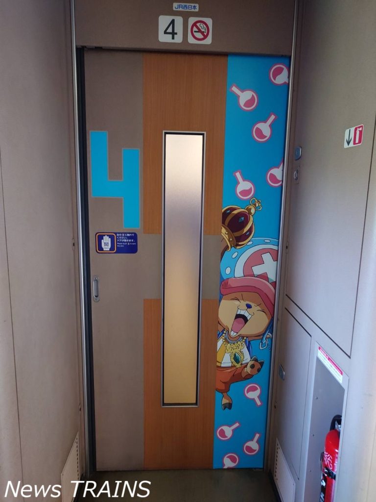 そのほか、車内チャイムはテレビアニメの初代オープニングテーマ『ウィーアー!』がアレンジされたものが流れるほか、一部の駅発着時はチョッパー(声優:大谷育江)の車内放送が実施されるので、チョッパーの声を聴くことも♪