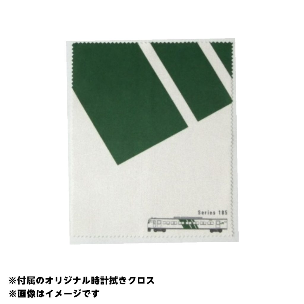 文字板には185系の車体を連想させるアイボリーカラーをベースに、シンボルとなるグリーンの3本ラインをレイアウト。