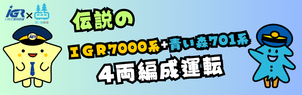 IGRいわて銀河鉄道と青い森鉄道は、「伝説のIGR7000系+青い森701系4両編成運転ツアー」を7月5日に実施する。