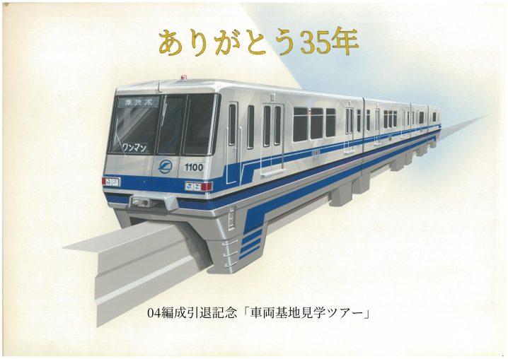 大阪モノレールは、1000形04編成が引退することを記念し、『04編成引退記念「車両基地見学ツアー」』を7月12日に開催する。