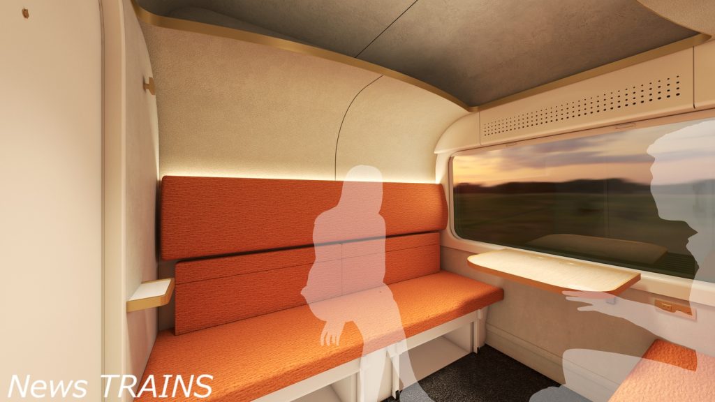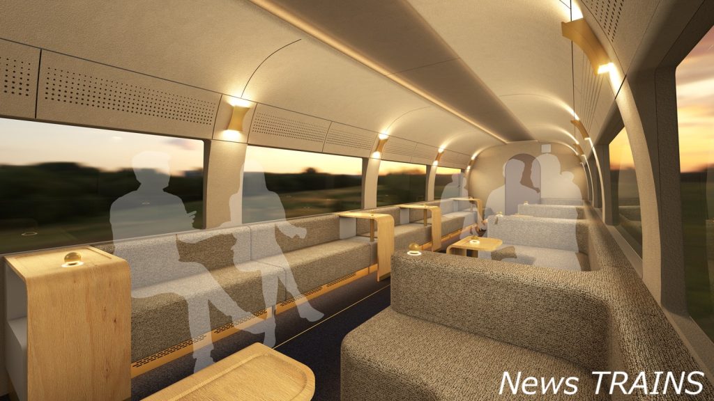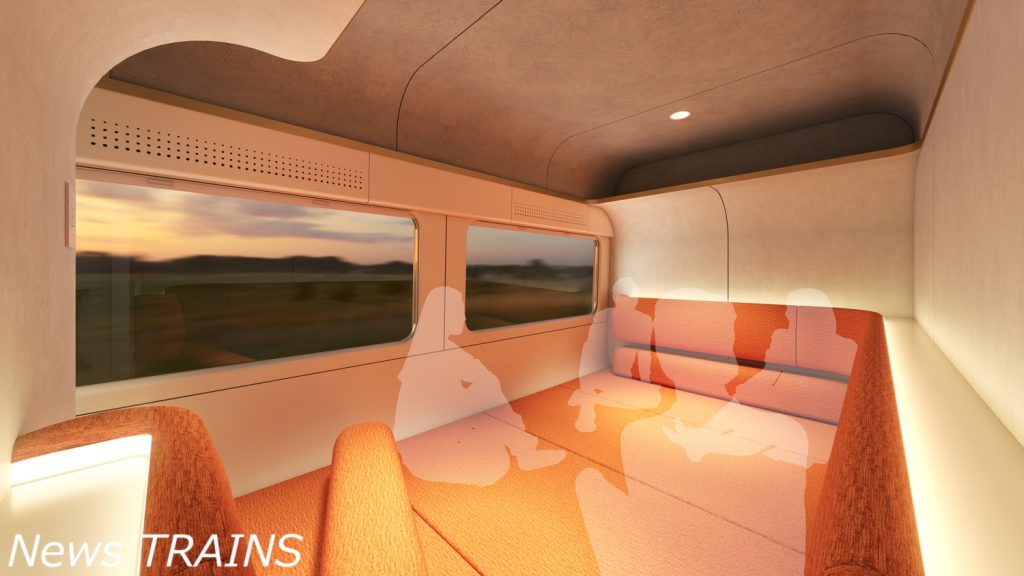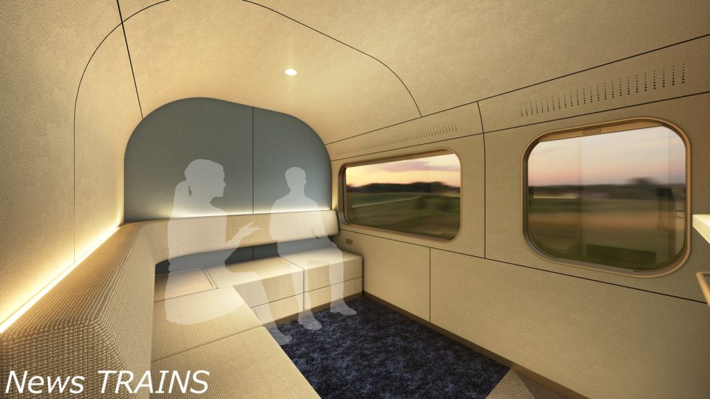またそのほか、車内唯一のオープンスペースとして、ラウンジスペースや販売スペースの設置を予定。 車いす対応の「グリーン個室」を6号車に1人用・2人用を設置する計画で、座席定員は合計120人程度となる。