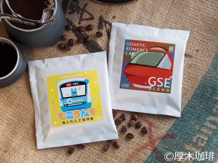 第2弾は、特急ロマンスカー・GSE(70000形)ともころん号E(5000形)をコンセプトにリリース。第1弾に引き続き、車両ごとのオリジナルブレンドを作成したという。厚木珈琲本店、厚木珈琲ミロード店、オンラインストアで販売する。