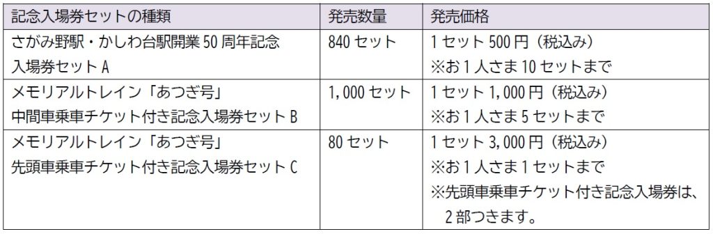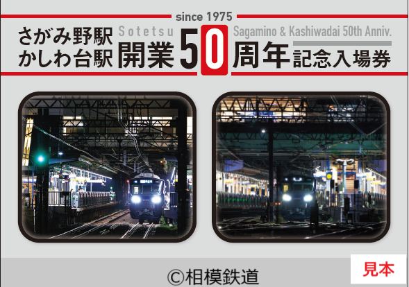 相鉄グループの相模鉄道は、相鉄本線 さがみ野駅・かしわ台駅の開業50周年記念イベントとして、記念入場券セットを6月28日(土)に発売、8月17日に特別列車の乗車体験会を開催する。
