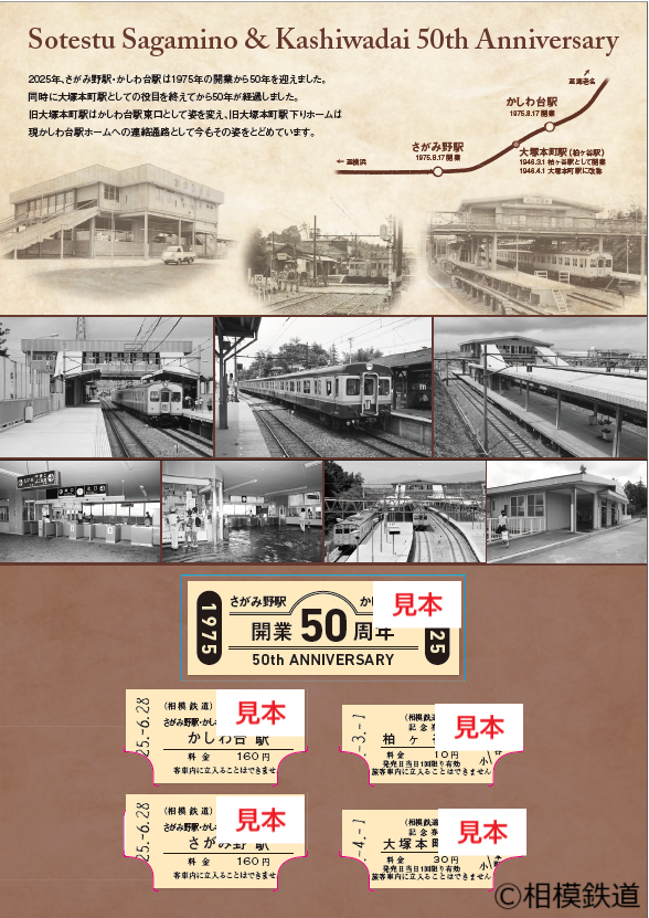 相鉄本線で一番新しい「さがみ野」「かしわ台」の両駅が1975年8月17日に開業し、2025年で開業50周年の節目を迎えることから利用者へ感謝を伝えるために実施するもの。