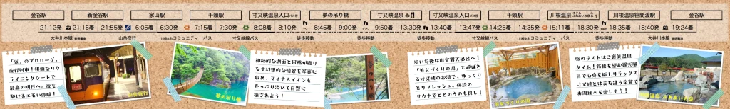 (山岳夜行列車への乗車・夜食のお弁当・夜鳴きそばサービス・発車日翌日から翌々日まで利用できる大井川本線フリー乗車票・発車日翌日から翌々日まで利用できる川根温泉の入浴チケット・朝軽食 含む)