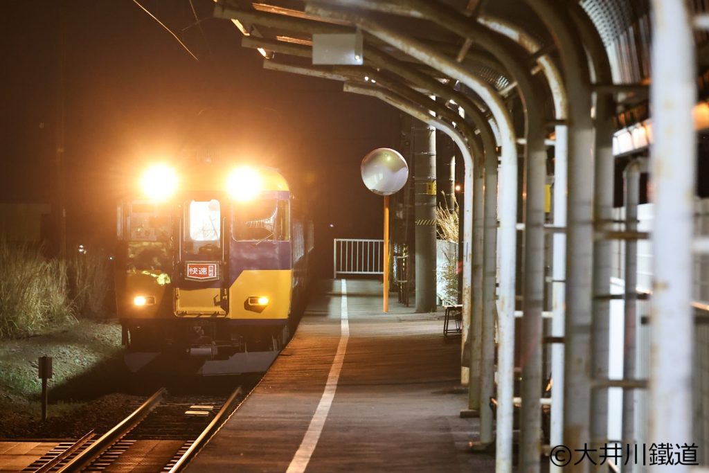 《運転時刻》新金谷21:55発 → 金谷・新金谷 ↔ 家山 往復運転 → 家山6:05着・川根温泉笹間渡6:14着