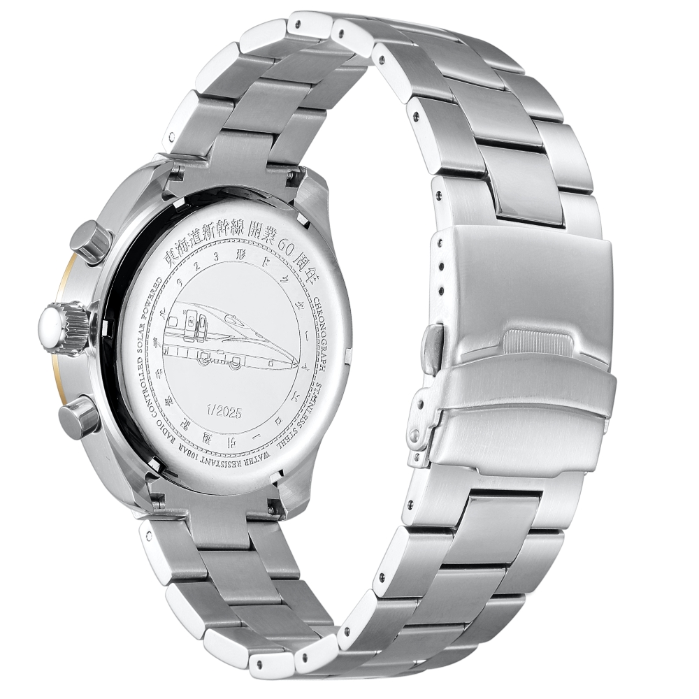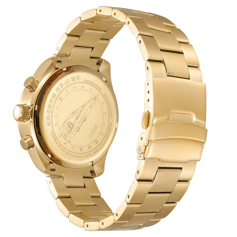 カラーはYellowGold×BlueとSilver×YellowGoldの2種類で、裏蓋には東海道新幹線開業60周年の刻印と限定版の証である2025点のエディションナンバー(0001~2025)の刻印を施した。