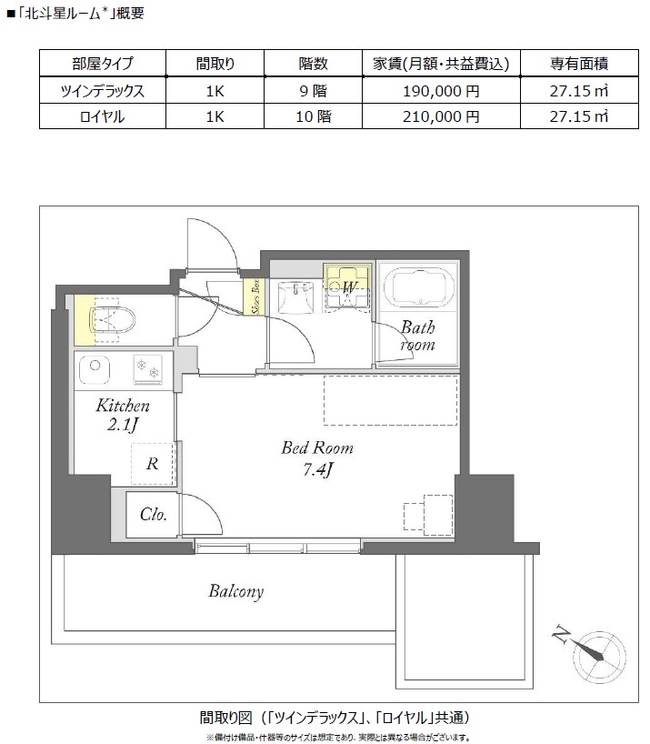 部屋のタイプは、ツインデラックスとロイヤルでいづれも1Kの間取りとなる。