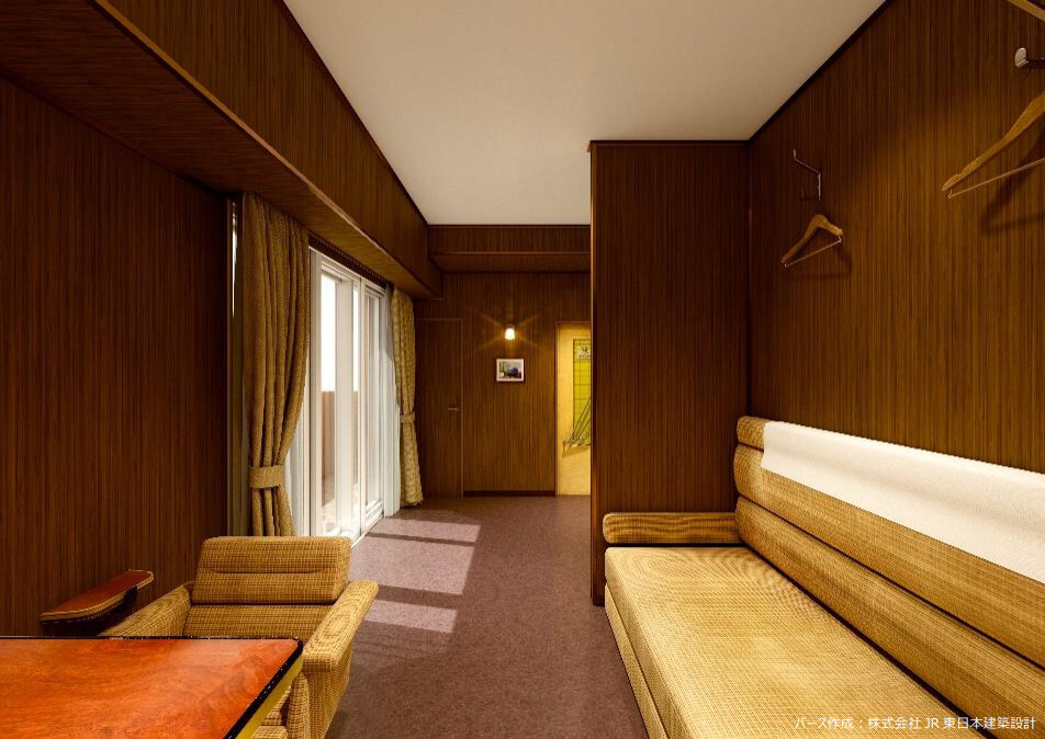 さらに、アール天井の採用に、居室内のカーペット敷、埋め込み式のテレビの設置により、当時の客車の雰囲気を再現。コンセプトルームは、線路側に面する高層階に位置し、実際に寝台特急「北斗星」が走行していた風景を見下ろすことのできる眺望となっているという。