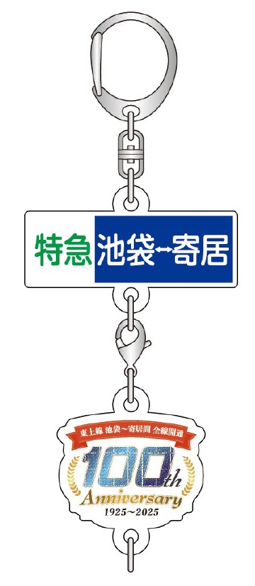 6つすべてをあつめると、参加者全員にかつて東上線を運行していた特急電車方向幕と東上線全線開通100周年ヘッドマークを連結させたアクリルキーホルダーをプレゼントする。また、Wチャンス賞として特急電車の愛称ヘッドマークをピンバッジにしたピンバッジセットを抽選でプレゼントする。