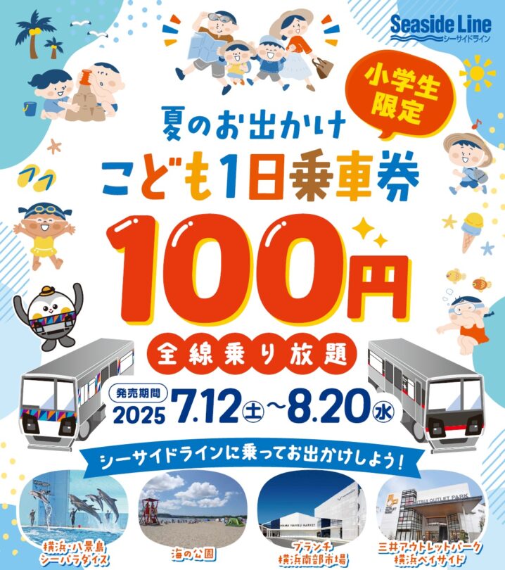 シーサイドラインを運営する横浜シーサイドラインは、夏休みのお出かけに便利な「こども1日乗車券」を100円で発売を開始した。
