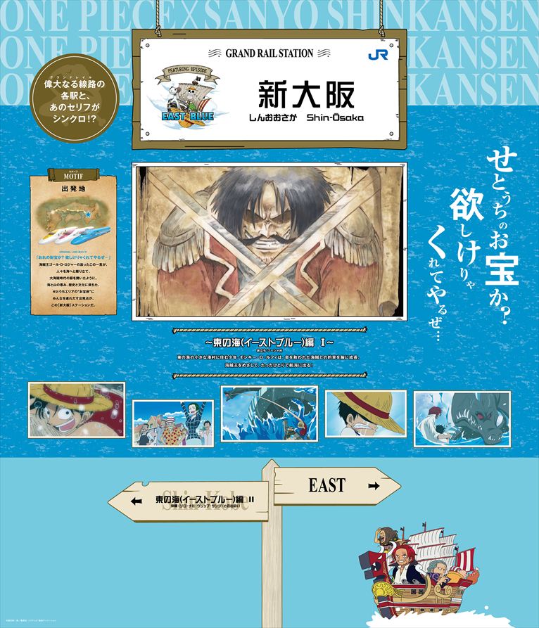西日本旅客鉄道(JR西日本)は、全編成が勢揃いした「ONE PIECE 新幹線」について、物語の世界観をさらに楽しんでもらえるよう、「ONE PIECE 新幹線スペシャルゾーン」を山陽新幹線全19駅に設置する。