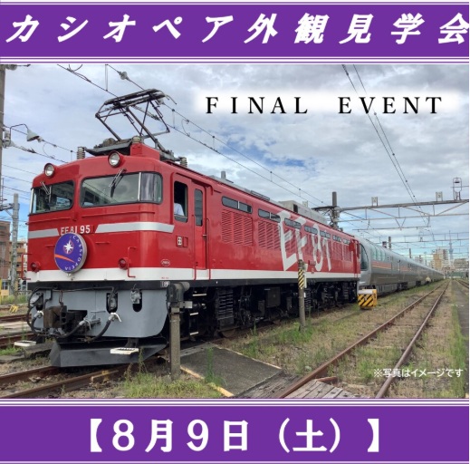「カシオペア外観見学会」は、尾久駅構内において、EF81と連結したカシオペアとカヤを間近で見学できるもので、9:10・10:15の回はEF81を上野方、13:40・14:45の回はEF81を青森方に連結する。なお、カシオペアの2号車から11号車は新幹線側(山側)からのみの見学となり、カヤと機関車の連結は行われない。