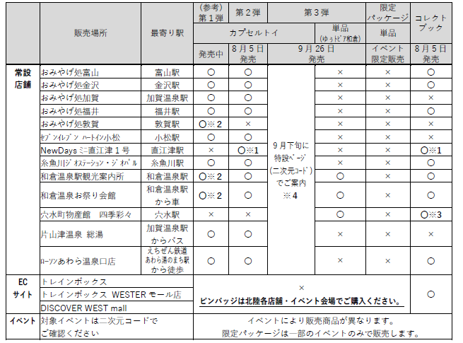 ※2の箇所(敦賀・和倉温泉)は、第1弾も8月5日から販売開始