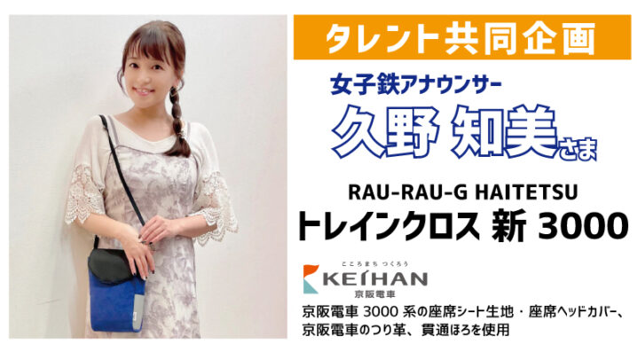 2025.08.08 Other News TRAINS編集部 まるで京阪電車3000系の座席シート!?女子鉄アナウンサー久野知美さんとサンワードの共同企画商品のコラボバッグが登場♪先行予約を受付中 サンワードは、女子鉄アナウンサー久野知美さん共同企画「トレインクロス新3000」の先行予約販売を8月9日から開始する。 引退車両の部材をアップサイクルする取り組みを行っているサンワードから、女子鉄アナウンサー久野知美さんの監修するコラボバッグが登場する。 京阪電気鉄道の3000系の座席シート・座席ヘッドカバー、つり革、貫通ほろなど使用部材にもこだわったコラボバック。バックの形状は座席シートをイメージし収納部分の生地は、柔らかな手触りで落ち着いた色目の3000系の座席シートを使用することで上品な印象に。また、バッグが座席シートに見えるよう3000系のかぶせパーツに座席ヘッドカバーの廃材を使用し形状も実際の座席ヘッドカバーに近づけたという。 両側面に取り付けられているポケットの素材は貫通ほろ。丈夫なポケットなのでペン挿しとしても使うことも♪つり革を使用した金具留めや久野さんオリジナルのネームタグと京阪電車の規定に沿ったネームタグもバッグのデザインのアクセントに♪ バッグは、8月9日・10日に開催の「大和鉄道まつり」のイベント会場において予約受付が行われるほか、予約者には先着30名に直筆サイン色紙をプレゼントする。 サンワード公式オンラインストア「ジョイブステーション」においても予約販売を受付中。 【画像提供:サンワード】