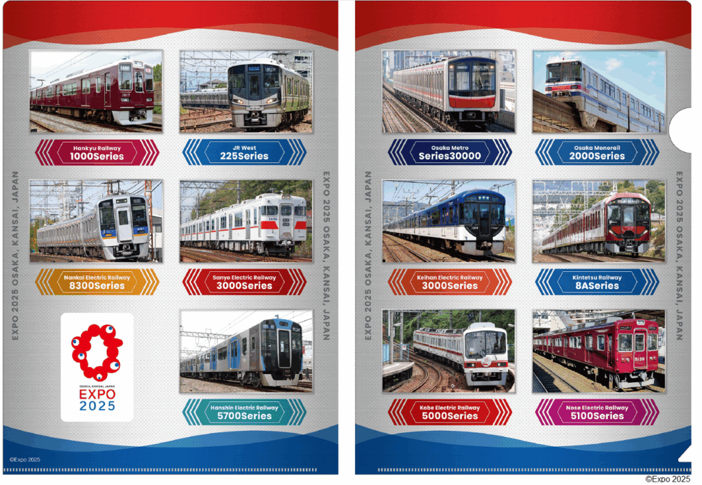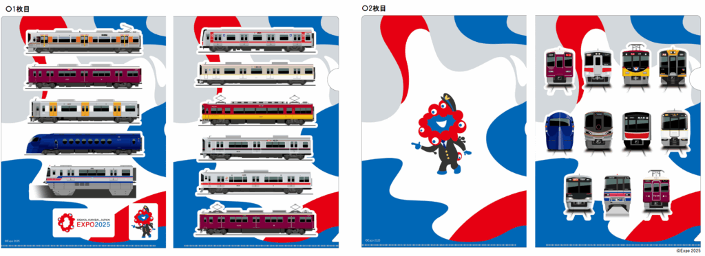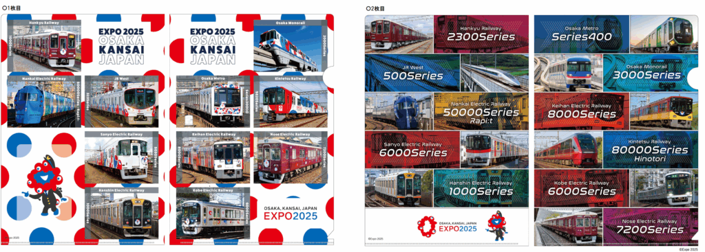 ①EXPO2025 & Kansai Area TrainsA4 クリアファイル2枚セット(イラスト):各880円