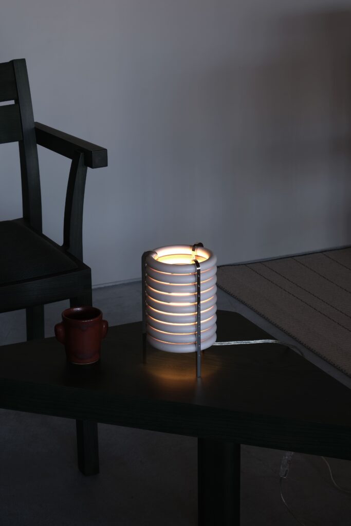 商品は、ロンドンを拠点に活動するデザインスタジオ「Akasaki&Vanhuyse」によるデザインで、長年使用された吊り輪の経年変化をデザインの一部として取り入れた。「8500系」で使用されていた約1編成分の吊り輪を商品150台の制作に活用した。
