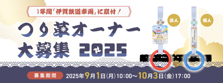 伊賀鉄道と伊賀市は、「いがてつオンラインショップ」において2025年度の「つり革」オーナーの募集を開始した。