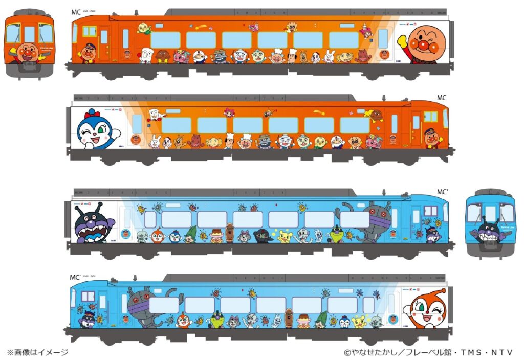 ●JR四国 高徳線に2600系「アンパンマン列車」が登場 「アンパンマン」「ばいきんまん」をコンセプトにした車両デザインに