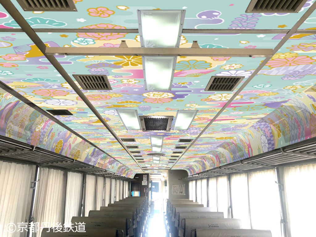 丹後地方のさまざまな美しい景色や植物とともにデザインされラッピング車両となっており、「丹後七姫」をイメージした「クロミ」の衣装には、2025年に開業10周年を迎えた丹鉄のこれまでの車両カラーを印象的に施した。内装も「クロミ」と「丹後七姫」の世界観一色となっている。