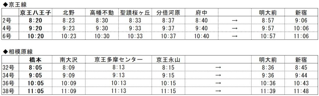 割引対象の列車は朝8時台から、10時台までに京王八王子駅、11時台までに橋本駅を発車する上り「京王ライナー」。座席指定券は、京王チケットレスサービスまたは券売機で購入が可能となっている。
