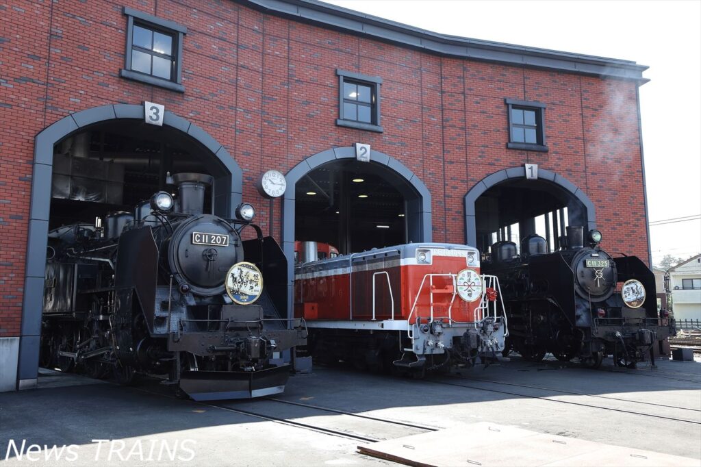 イベントは2017年に第1回を開催して以来、2025年で7回目。「SL大樹」「DL大樹」として活躍する「C11形207号機」「DE10形1099号機」「C11形325号機」が機関庫内に勢ぞろいした。