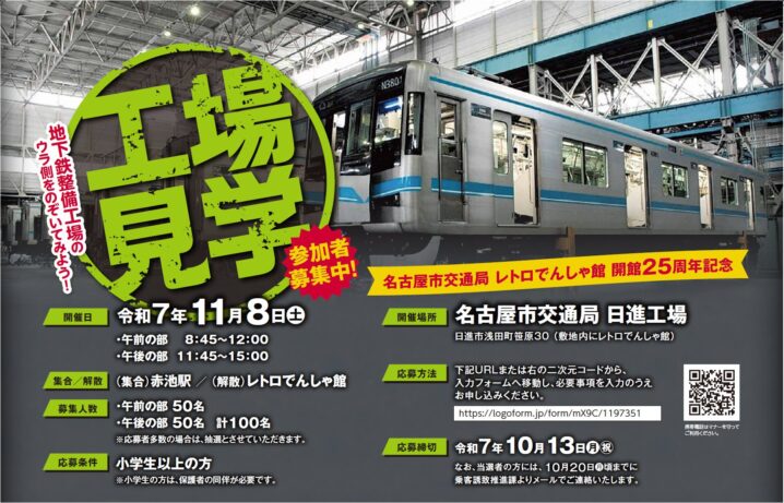 名古屋市交通局は、「工場見学in日進工場」を11月8日に開催する。