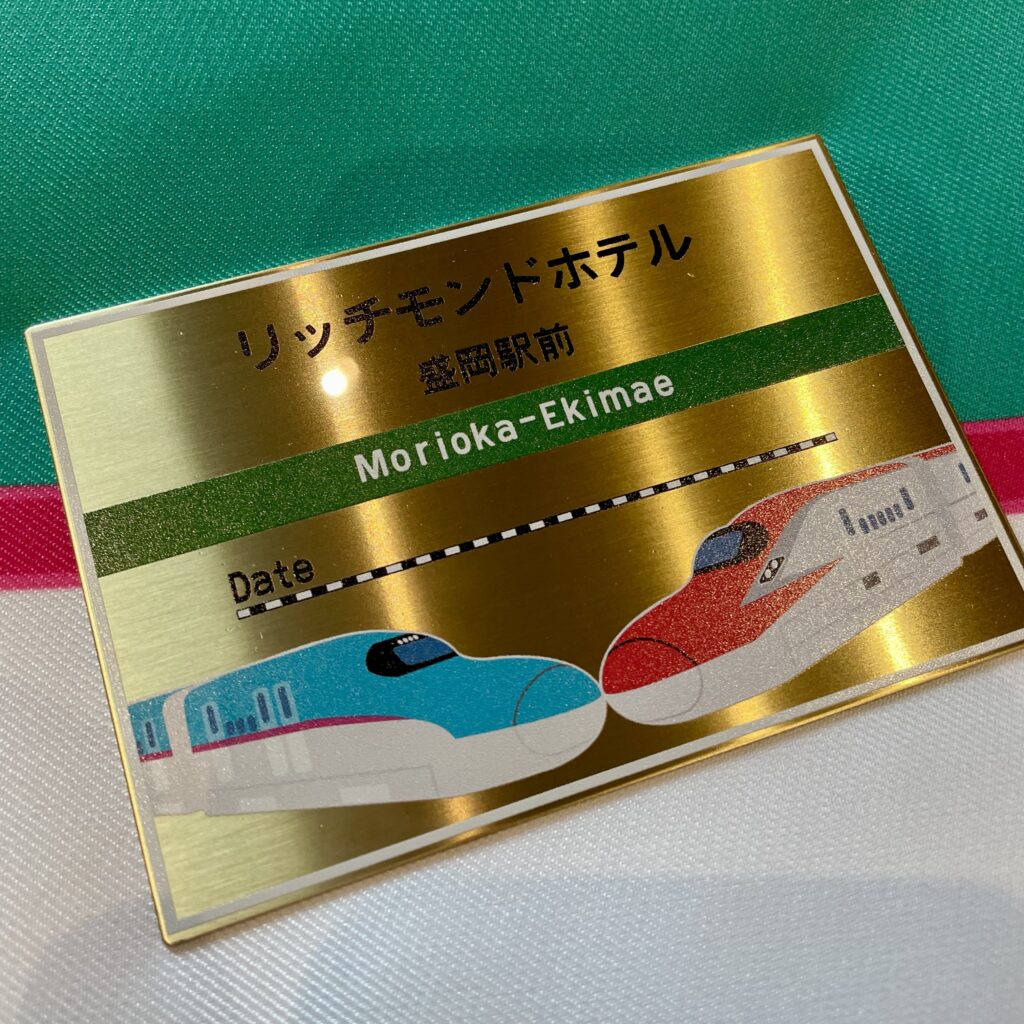 盛岡駅前が一望できる位置にあるリッチモンドホテル盛岡駅前の「ステーションビューツインルーム」を鉄道づくしの内装に。はやぶさ・こまちデザインのオリジナルベッドスローやクッション、大きなトレインぬいぐるみ、ふくらE5・E6をお部屋に設置したほか、宿泊日を刻印できる「ステイメモリー銘板」は持ち帰ることも可能。