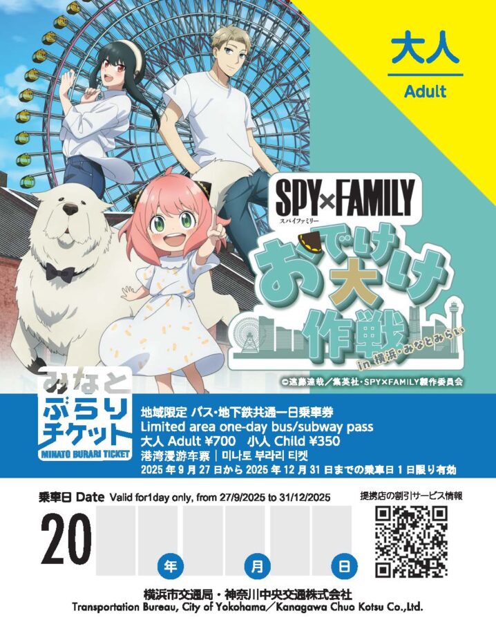 横浜市交通局は、『SPY×FAMILY「おでけけ」大作戦 in 横浜・みなとみらい』特別デザインみなとぶらりチケットを9月27日より発売する。