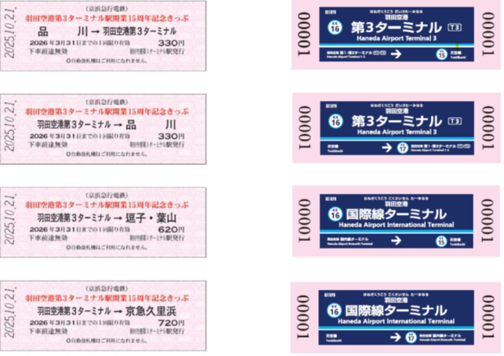 京浜急行電鉄は、羽田空港第3ターミナル駅が開業から15周年を迎えることを記念し、「羽田空港第3ターミナル駅開業15周年記念乗車券」を10月21日から発売する。