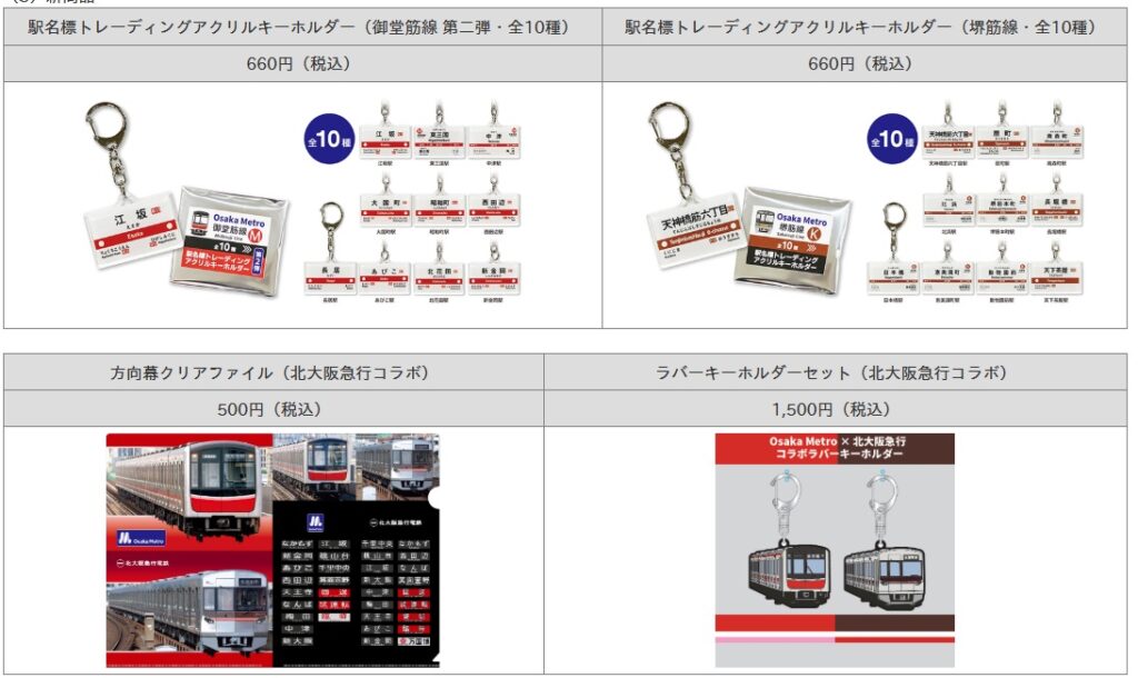 10月5日に開催されたグッズ特別販売会で販売されていたグッズを公式オンラインショップで販売を開始するほか、駅祭ティング2025で新発売となった北大阪急行電鉄とのコラボ商品も発売する。なお、定期券販売所でも10月27日より順次取り扱いを予定する。