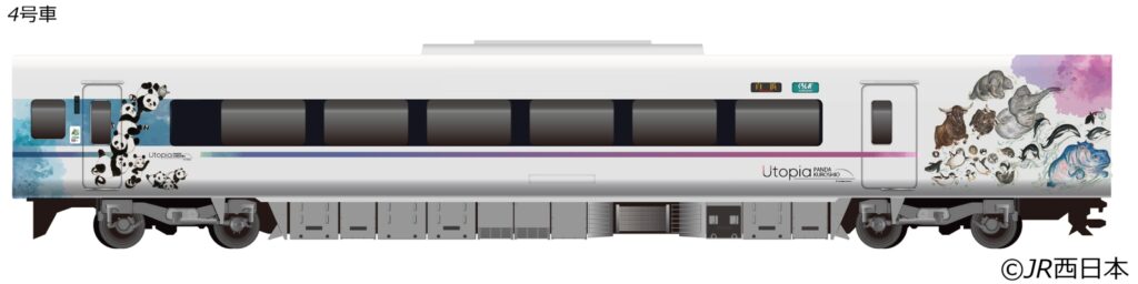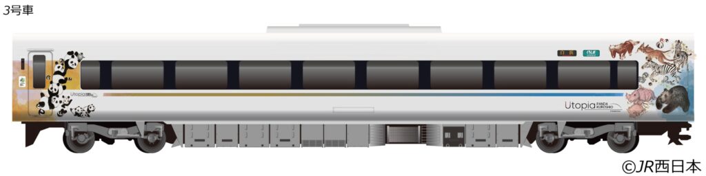車両は、「パンダくろしお『Smile アドベンチャートレイン』」の1編成のデザインを変更し、「パンダくろしお『Utopia Smileトレイン』」として運行。これにより「パンダくろしお」号は11月から、現在運行する「パンダくろしお『Smile アドベンチャートレイン』」、「パンダくろしお『サステナブルSmileトレイン』」と合わせ、全部で3種類3編成となる。