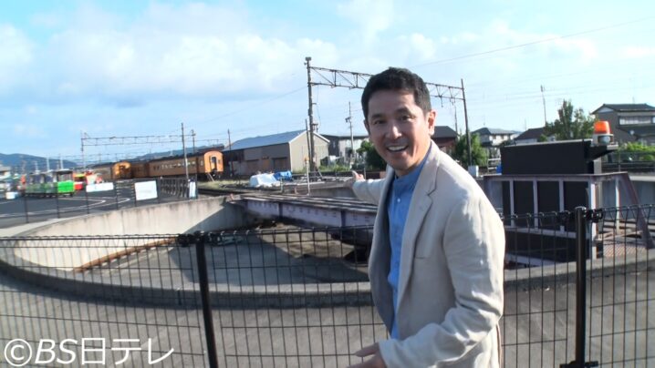 旅のスタートは、大井川鐵道の新金谷駅。区間内に2カ所しかない転車台に、西村さんは早朝にもかかわらず大興奮。「何で転車台が素晴らしいかというと、長くなりますけど…」。いつもながら、オープニングからのマシンガントーク。スタジオの友近さん、礼二さんは早くも圧倒され気味だ。
