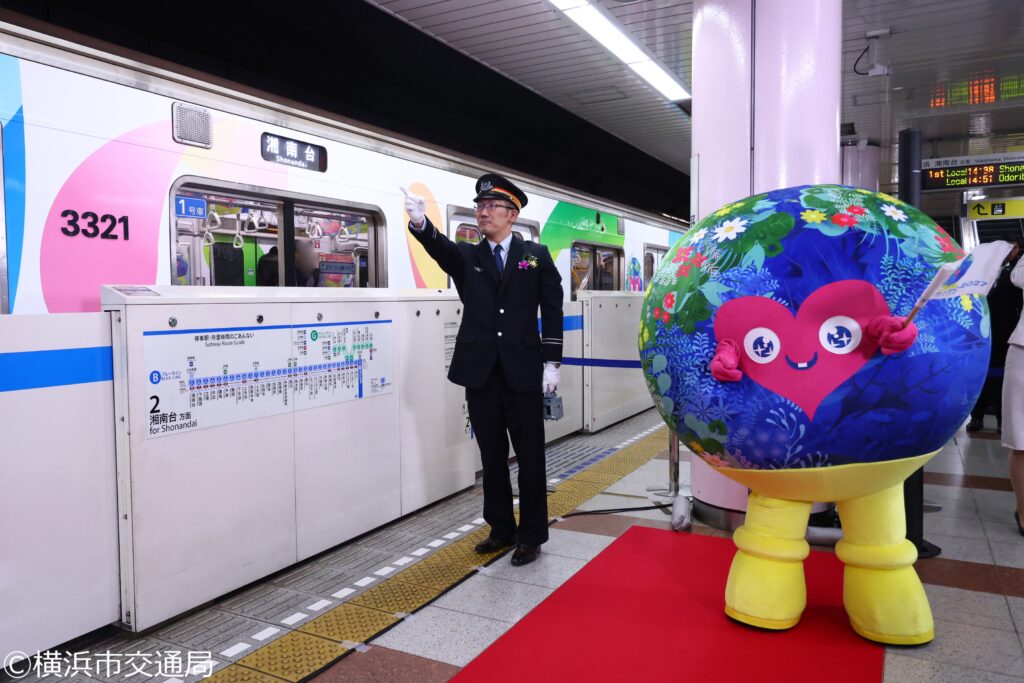 運行開始を記念し、あざみ野駅で「横浜市営地下鉄ブルーライン GREEN×EXPO 2027ラッピングトレイン出発式」を開催。折居良一郎 横浜市脱炭素・GREEN×EXPO推進局長、 栗本尚幸 公益社団法人2027年国際園芸博覧会協会事務次長、三村庄一 横浜市交通局長、原慎司あざみ野駅駅長が出席し、GREEN×EXPO 2027公式マスコットキャラクター「トゥンクトゥンク」と共にテープカットを執り行った後、原慎司あざみ野駅駅長の出発合図を送り「GREEN×EXPO 2027特別仕様ラッピングトレイン」は出発した。